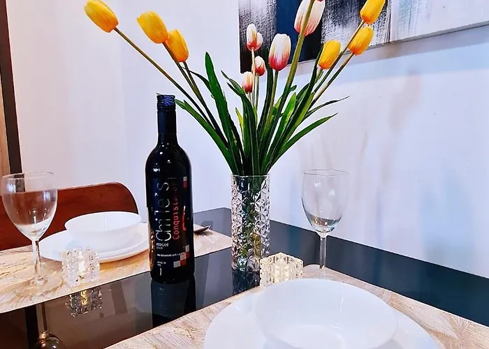 Un angolo cottura attrezzato è disponibile nelle camere di quest'appartamento. Questo alloggio è a due passi dalla stazione degli autobus Free.